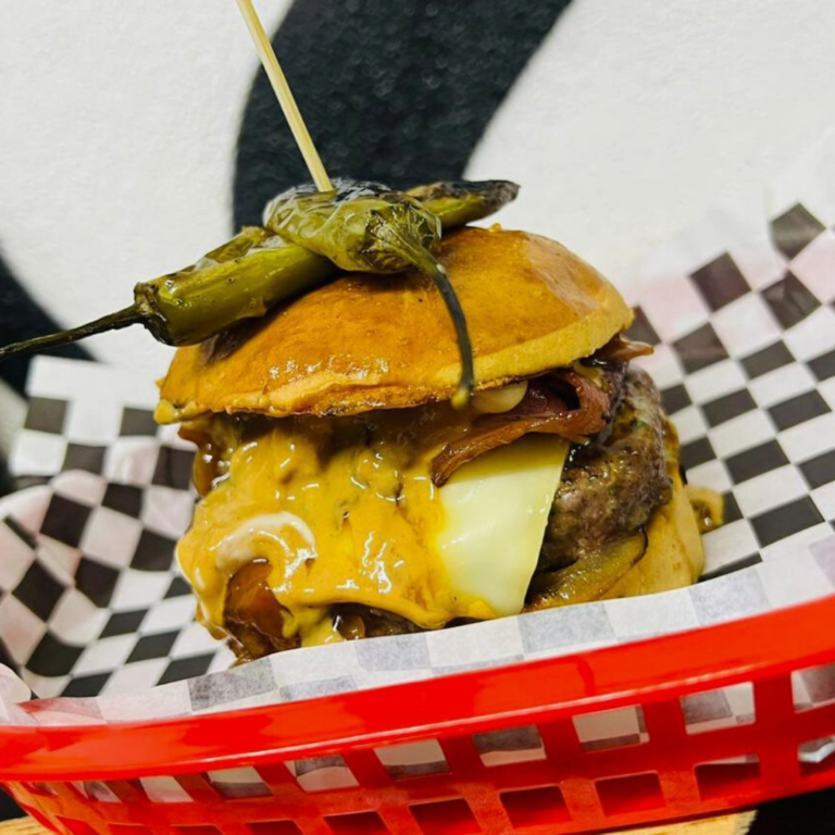 Para que disfrutes de una buena hamburguesa, tienes que visitar Pinche Burguer, aquí tienen deliciosas hamburguesas ahumadas y al carbón, encuentras cinco variedades que seguro se te van antojar, desde la clásica con queso y tocino hasta las especialidades como la Kentuckiana que es de pollo estilo KFC, la Texana con costilla de cerdo ahumada, la Neoyorkina con queso suizo, mermelada de tocino y crema de cacahuate, o atrévete a probar la Pinche Burger, lleva 200 gramos de carne de res y cerdo ahumada, aro de tocino, mezcal de quesos al centro y cebolla caramelizada. ¿A poco no se te hace agua la boca?